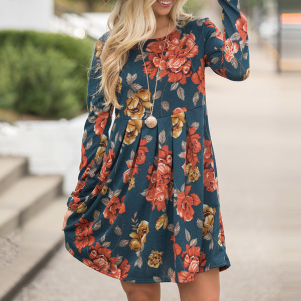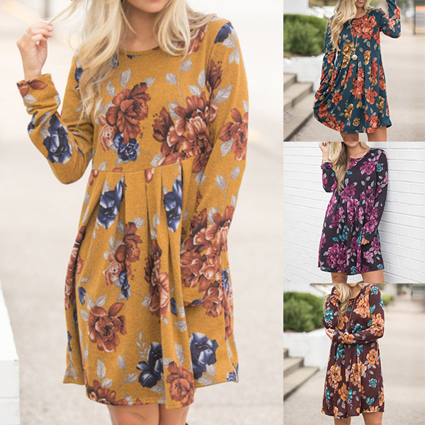 You can have a fresh and sweet style when you wear this dress. Boasts vibrant floral print,accompanied with long