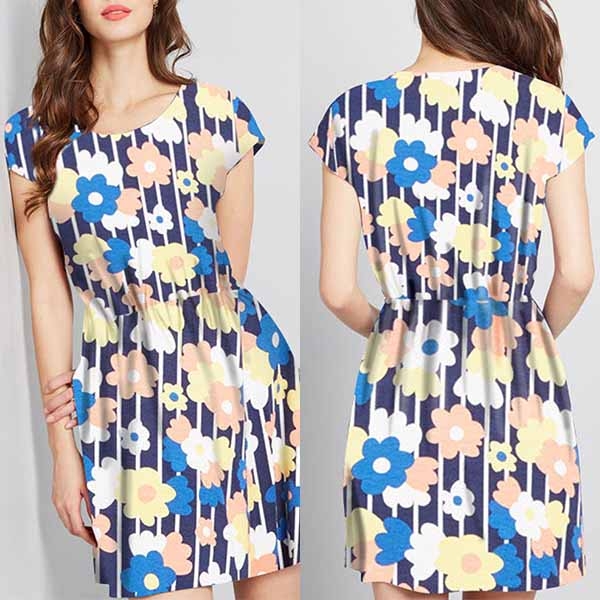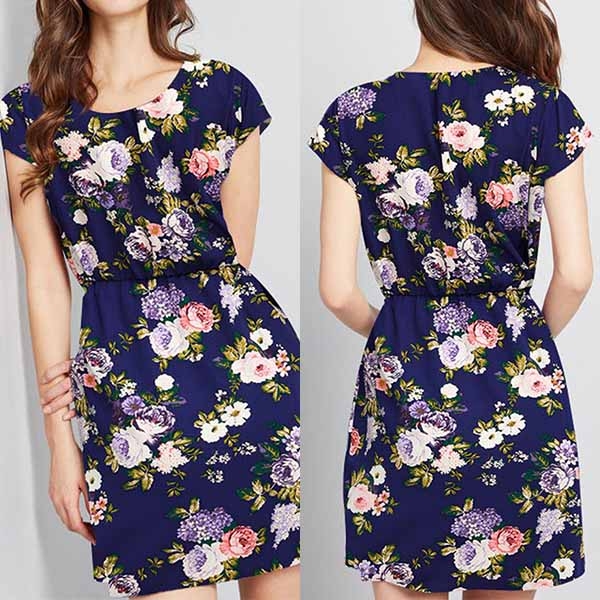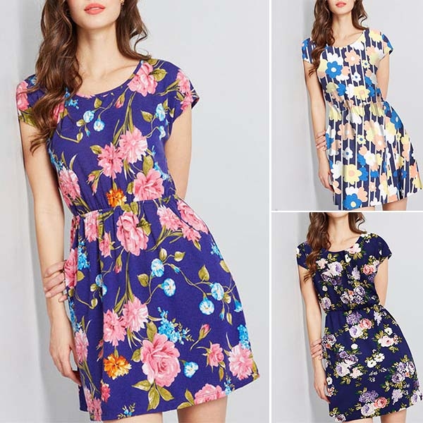dress to your wardrobe? Boasts vibrant floral print details,with short sleeve,round neck and an elastic