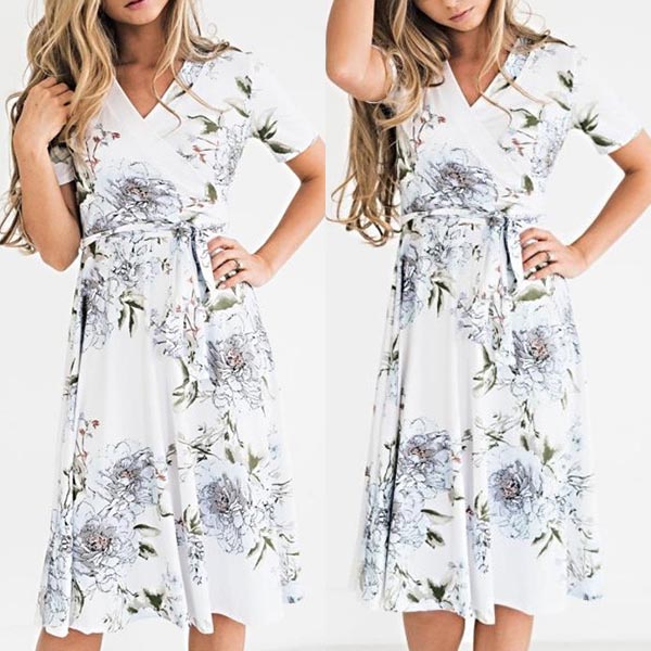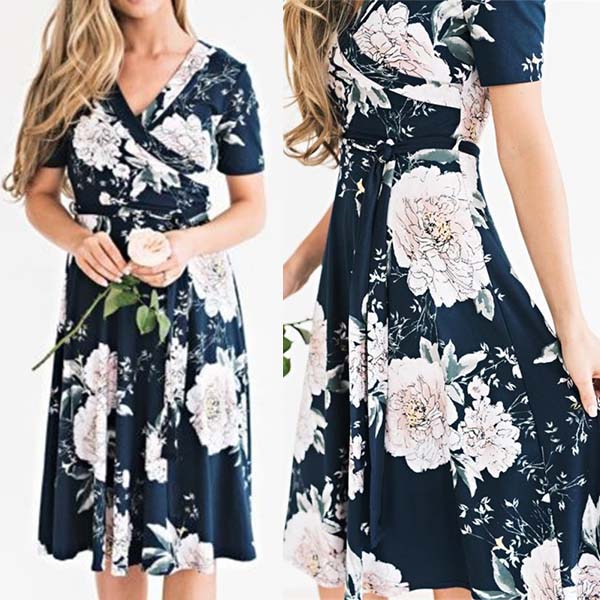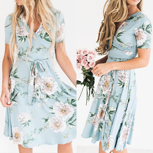 Boasts chic printed pattern,fresh and sweet. Finished with short sleeve,v-neck and a clean silhouette,