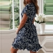 print details,with short sleeve,v-neck and ruffle hem design,which can make any girl look effortlessly