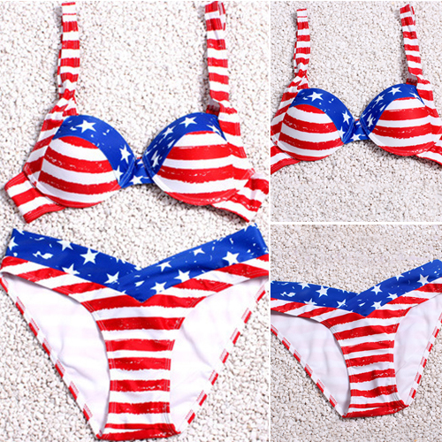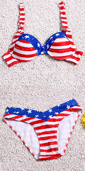Make the best of your sun-soaked getaways with this bikini set. Striped style with stars pattern,