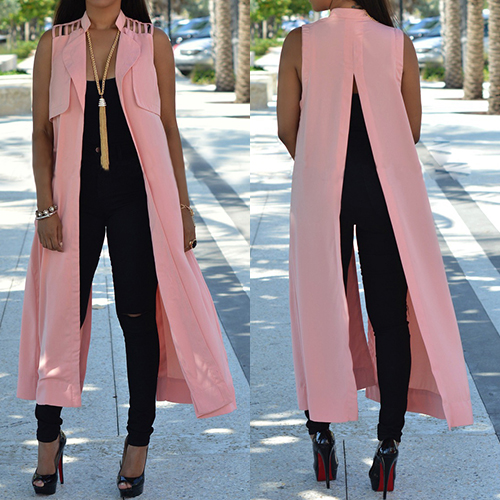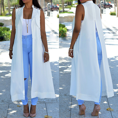Very cool cloak with sleeveless and back slit design, it would give you a comfortable wearing feeling.