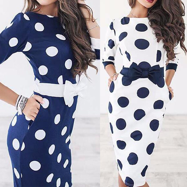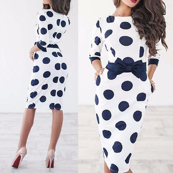 Dots printed design can give you a more eye-catching look. Finished with 3/4 sleeve,round neck and a fit silhouette,