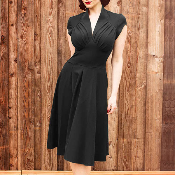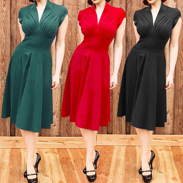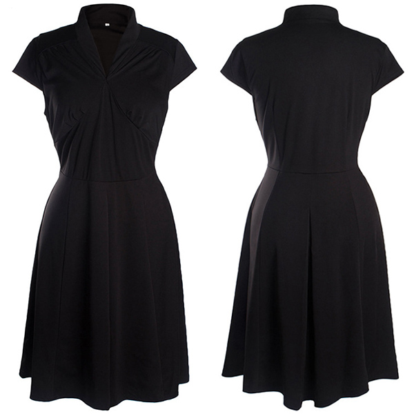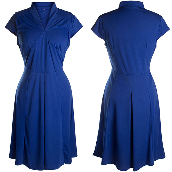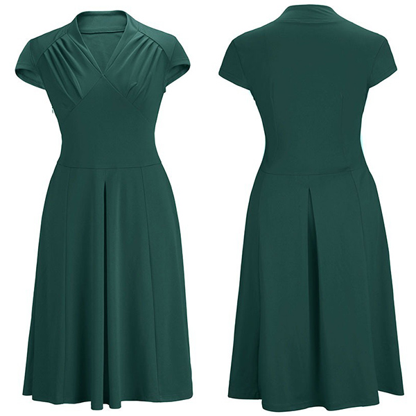 Features a solid color,cap sleeve,v-neck and high waist design,this dress not only can portray