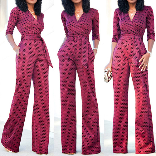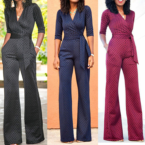 half sleeve,deep v-neckline,high waist and a sleek silhouette,this jumpsuit can make you