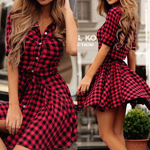 When you wanna update your wardrobe,you can consider this short dress. Plaid style,designed with half sleeve,