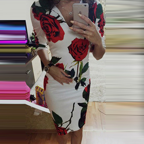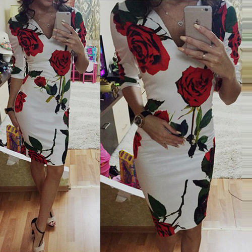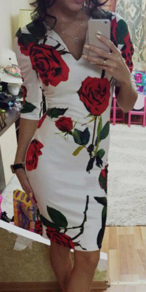 Show off your elegant temperament and charming curve via this dress. It features romantic rose printed pattern,