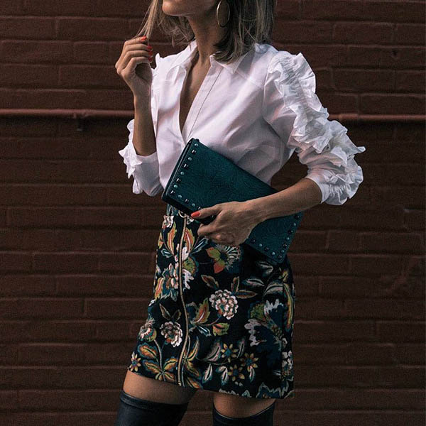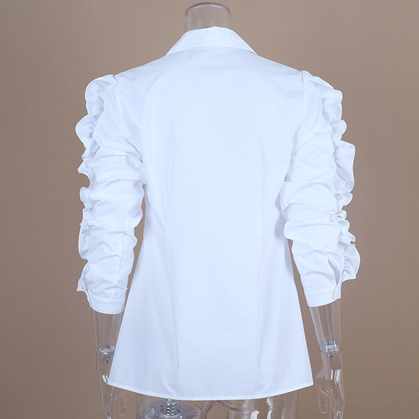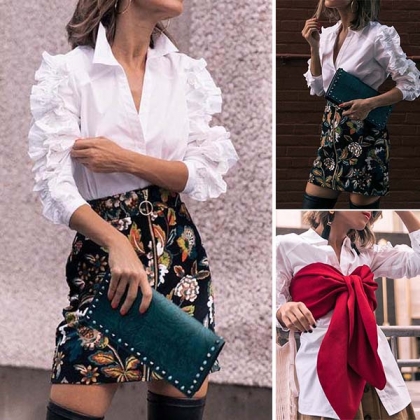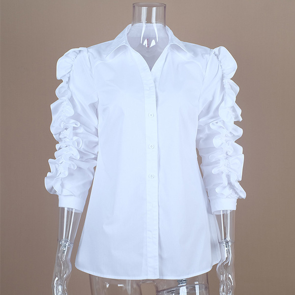 The ruffle design at sleeve part makes this piece more attractive. It is a wise choice to buy this shirt!