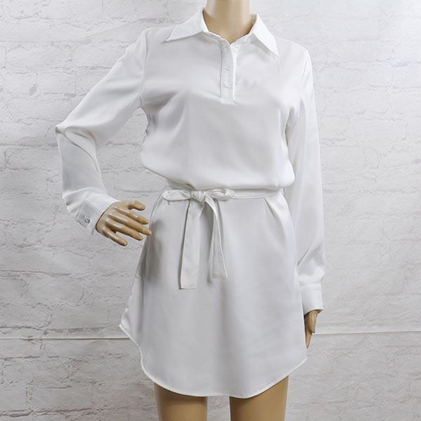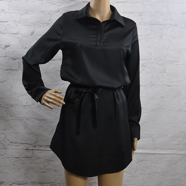 with long sleeve,POLO collar and a simple and clean silhouette,delicate and stylish. Comes with a waist strap,