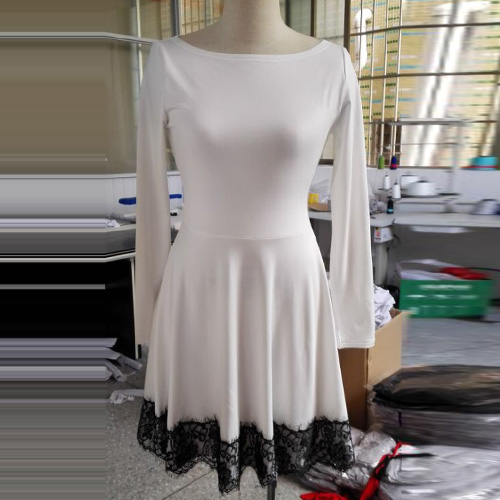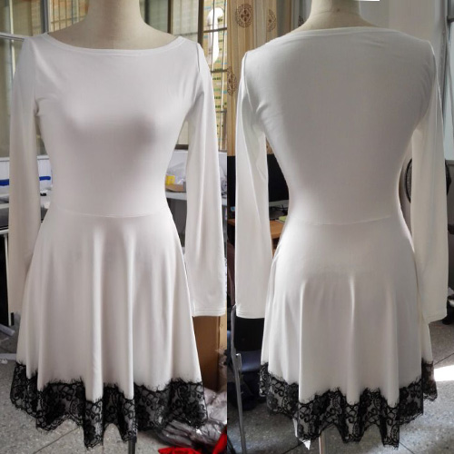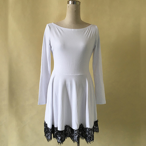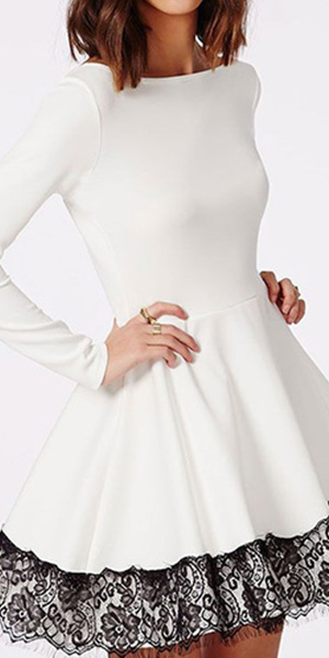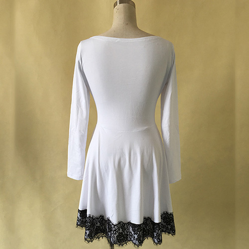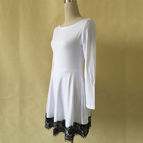 is outfitted with long sleeve,round neckline and high waist,delicate and refined. And its lace spliced deisgn