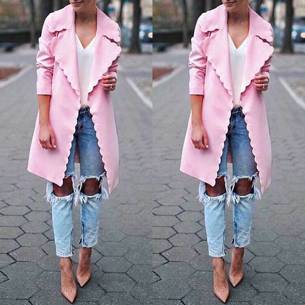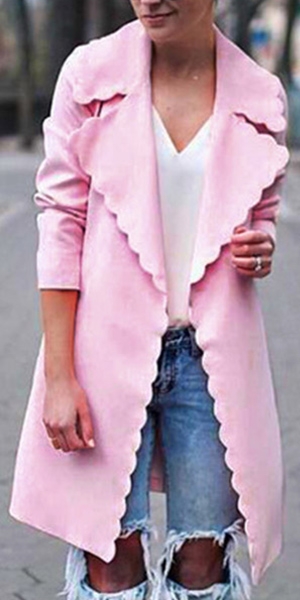 OL Style Long Sleeve Solid Color Slim Fit Coat