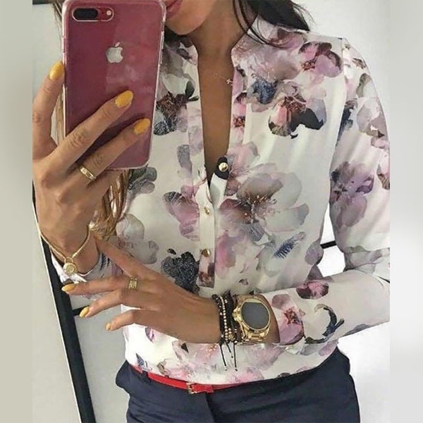This blouse is designed with chic and eye-catching printed details,which can offer you a more beautiful look.