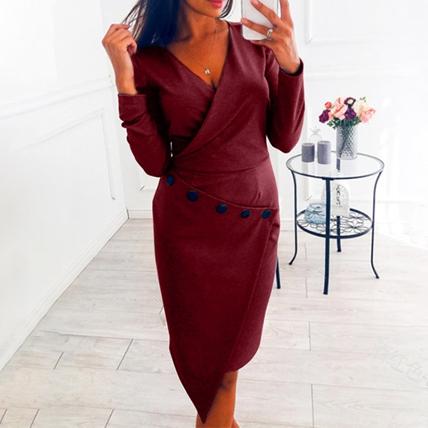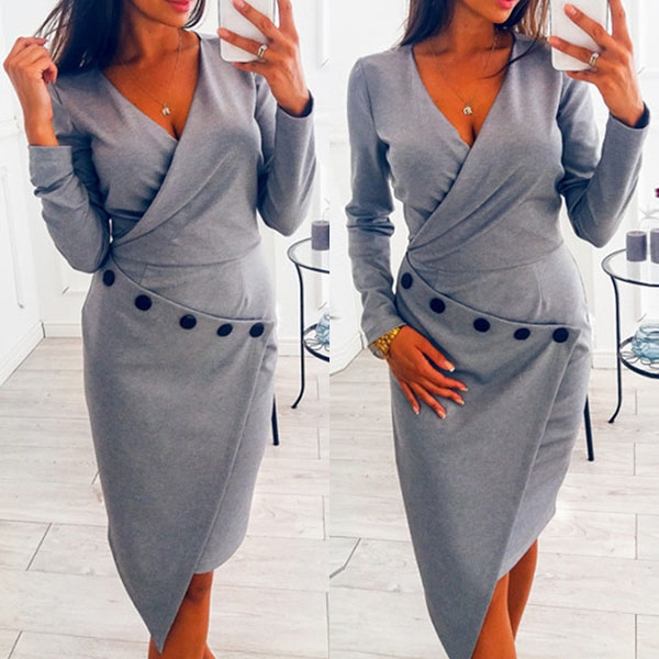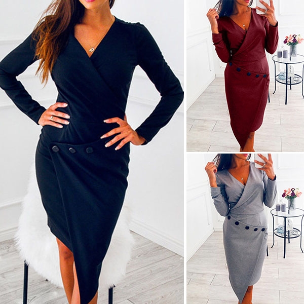 Boasts a solid color,simple yet elegant. It is designed with long sleeve,v-neck,an irregular hem and a