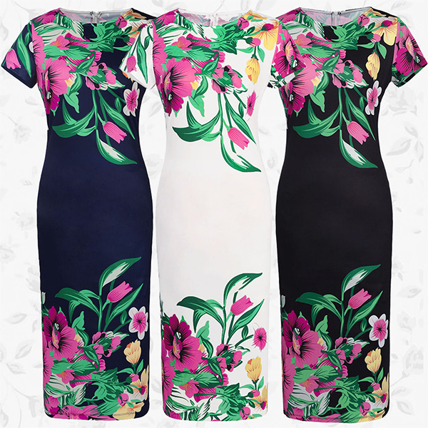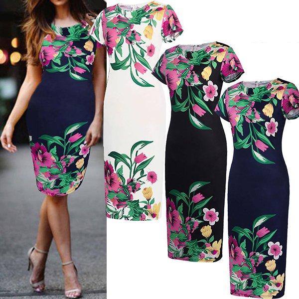 To be an elegant and charming office lady with this pencil dress. It is styled with short sleeve,round neck and a fit silhouette,