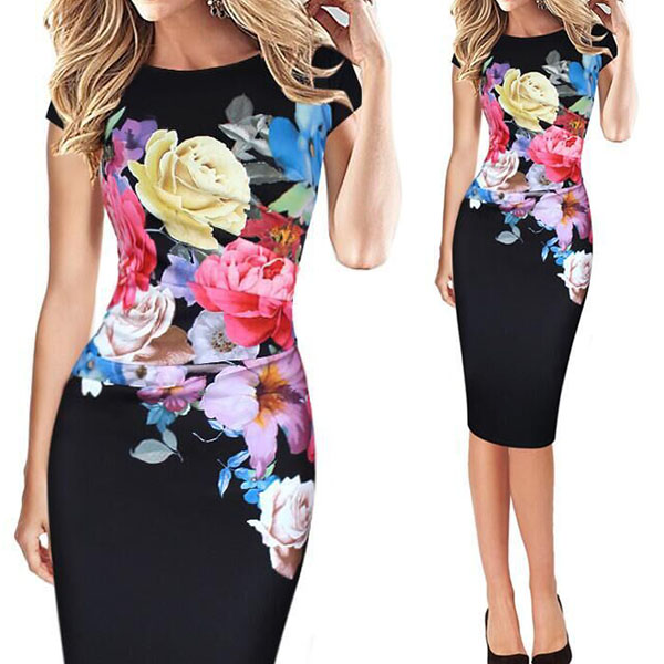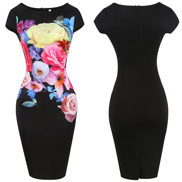 Easy to give others a deep impression through this pencil dress. Features vivid and eye-catching printed pattern,