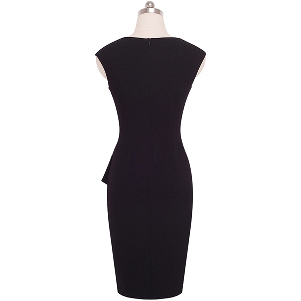 and confident side. Finished with sleeveless,round neck,high waist and a fit silhouette,this dress