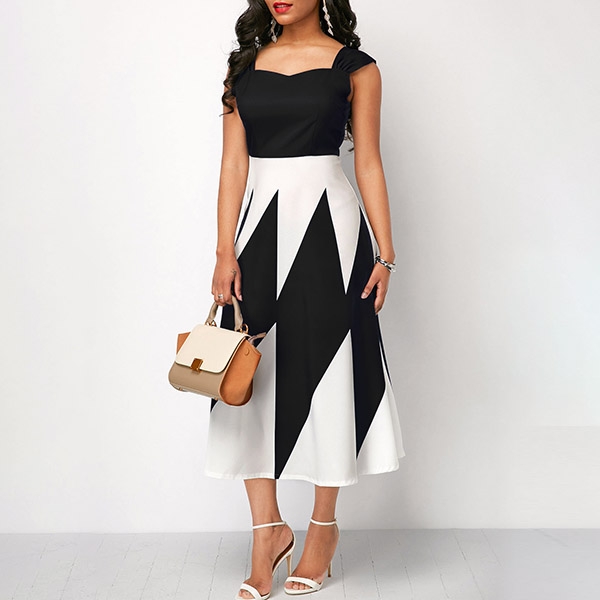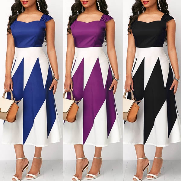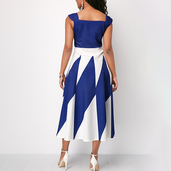 delicate dress. Contrast color style,with sleeveless,square collar and high waist design,this is a dress