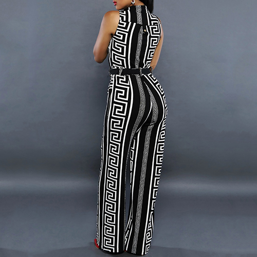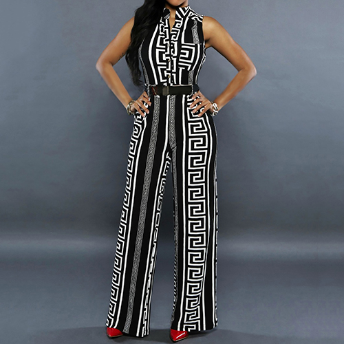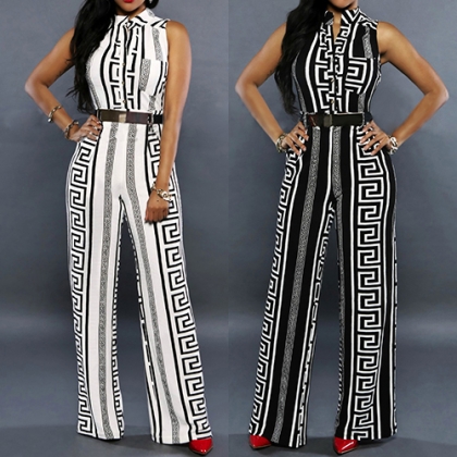 and eye-catching printed pattern,with sleeveless,stand collar,high waist and a sleek silhouette,this jumpsuit can