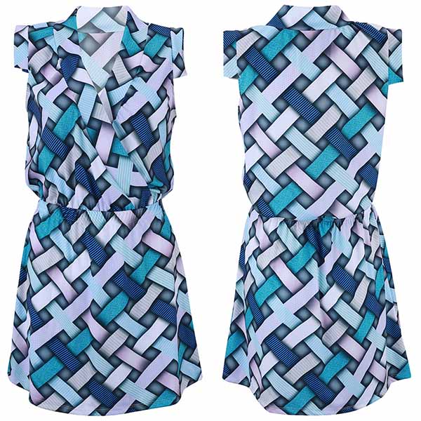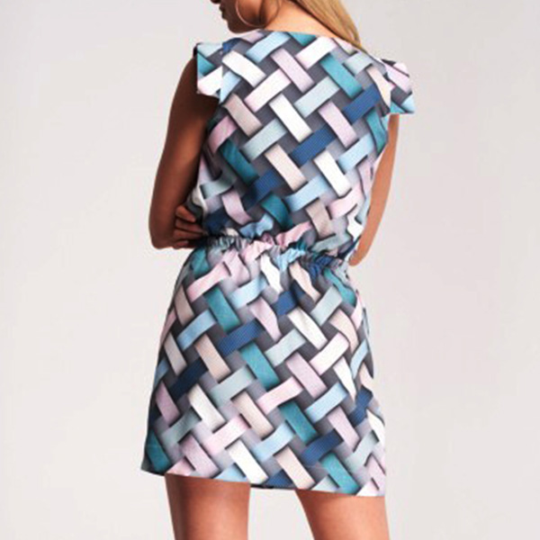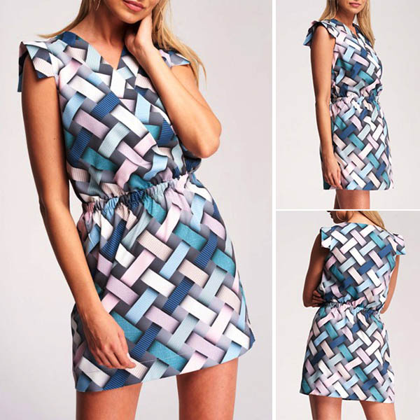 Designed with chic printed pattern,finished with sleeveless,v-neck and a fit silhouette,this dress