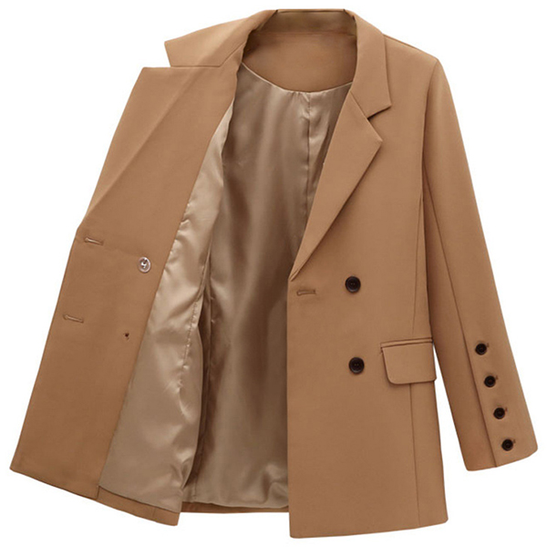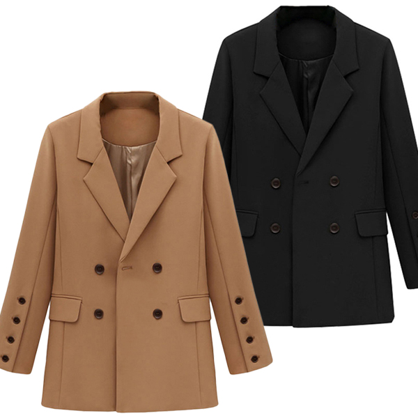 double-breasted and a fit silhouette,cozy and delicate. Matching with your high waist wide-leg