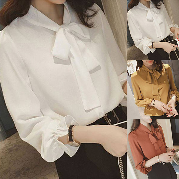 Step into your office with this blouse,you would receive their envious eyes. Solid color style,comes with trumpet sleeve and lace-up bowknot neckline design,elegant,sweet and charming. No matter you pair with your shorts or skirts or jeans,it can give you a fashionable style.
