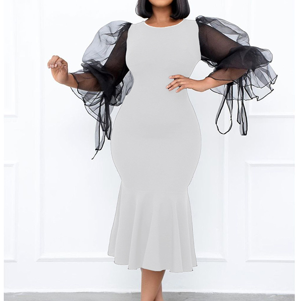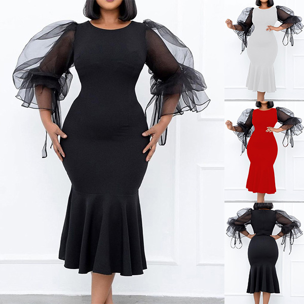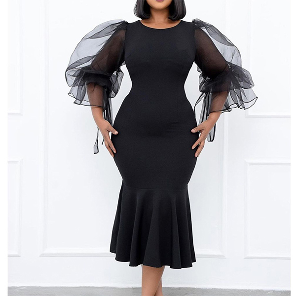 You can look exceptionally stunning when you slip into this dress. Boasts a flattering black tone,its alluring design details like gauze spliced and boat neck design make this piece look so sexy and flirty.Paired with your sexy heels and elegant clutch for the coming parties and gatherings.