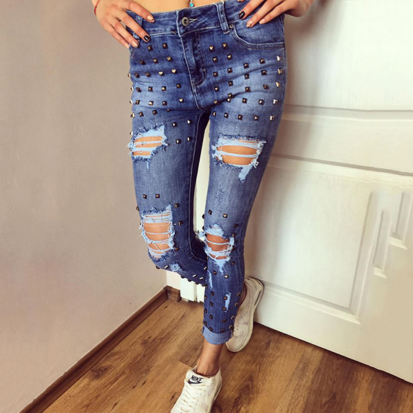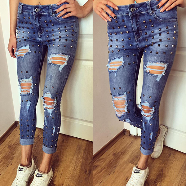 design give you the chance to showcase your charming and slender figure,while its rivets and ripped details make this