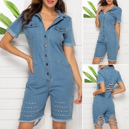 You can easily win more eyes when you slip into this denim romper. It is finished with short sleeve