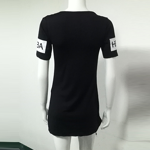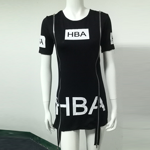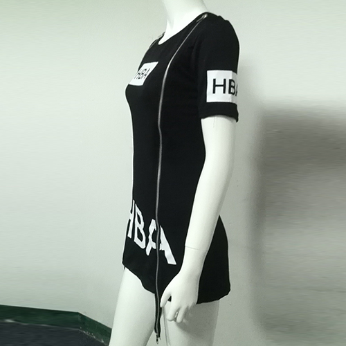 short sleeves and round neckline and its chic design like zipper slit hem make this piece