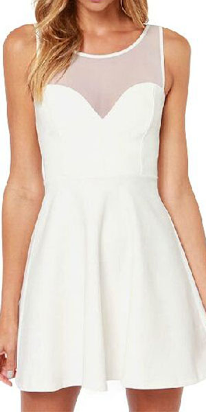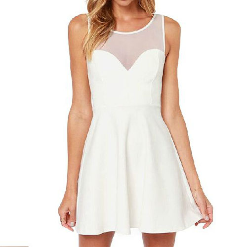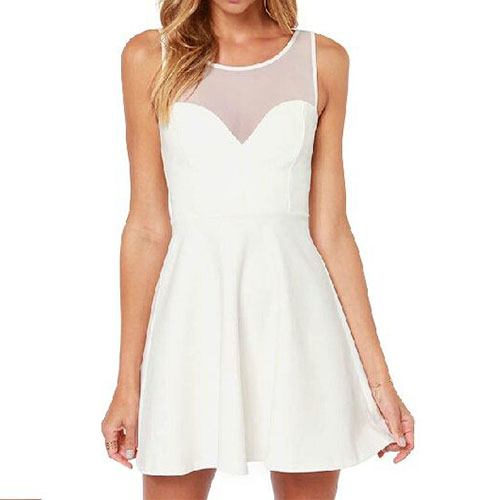 Solid color style, with gauze spliced and hollow out design, it is many girls' taste. And a cut