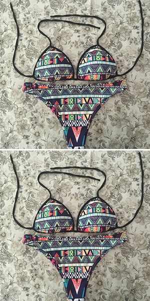 When summer comes,it is time for your to start your beach trip with this bikini set. It features retro yet chic