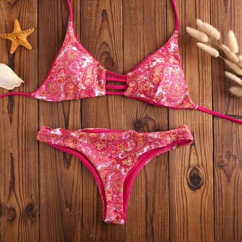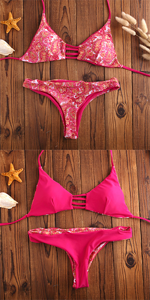 Show off your feminine curve in this eye-catching bikini. It features retro style printed pattern,