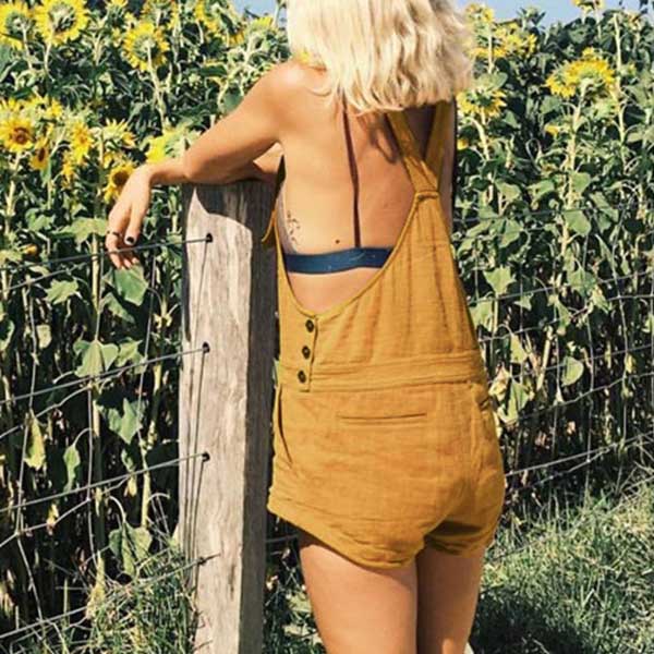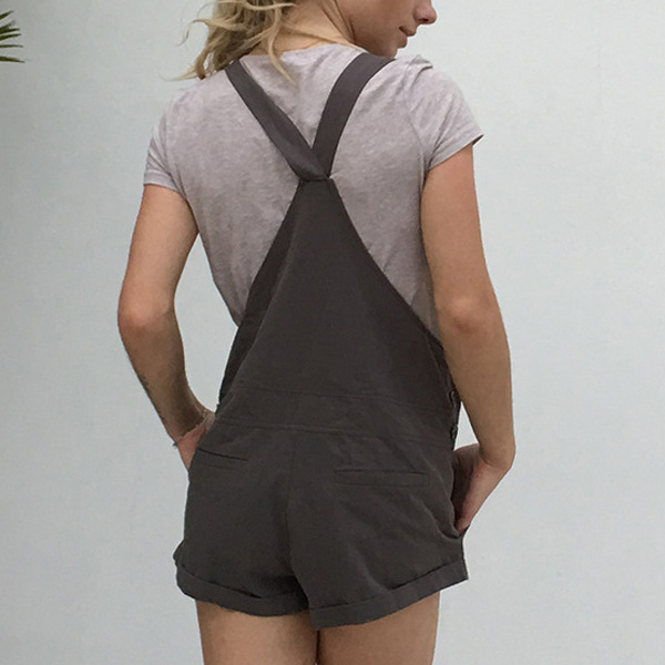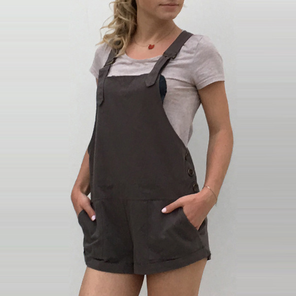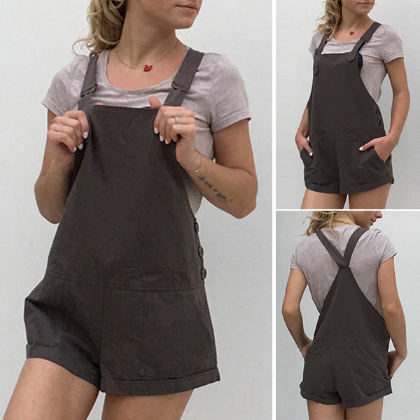 Retro Solid Color Buttons Loose Suspender Jumpsuits