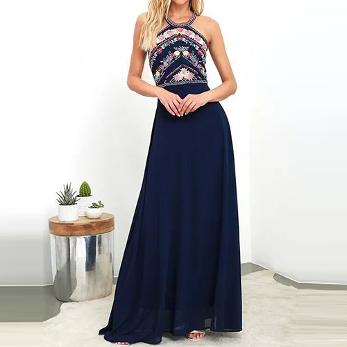 Retro style, with the detailing of embroidery printed design, this dress can make you stand out.