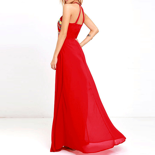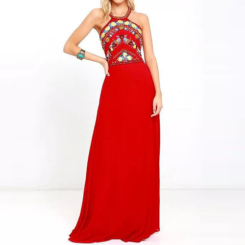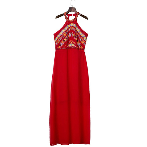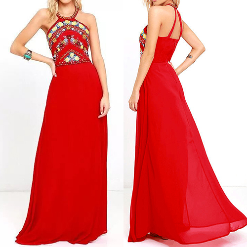 Designed with sleeveless, backless and floor-length, elegant and sexy. Lucky red and noble