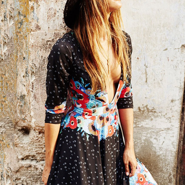 Its retro style printed pattern makes this piece look so eye-catching,while the deep v-neck design adds some sexy and