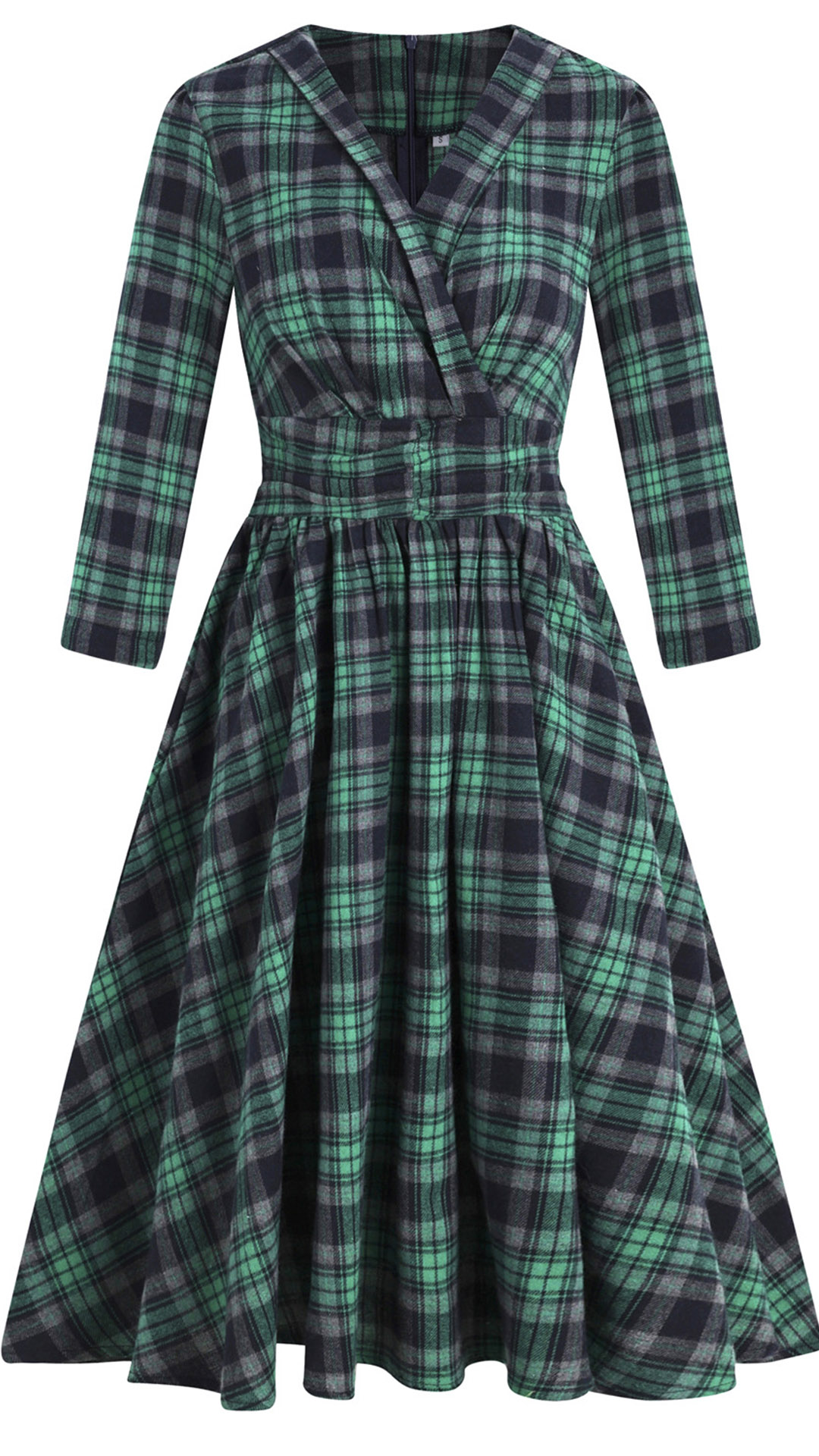 You can't be more elegant and charming than in this maxi dress! Retro plaid style,with long sleeves,