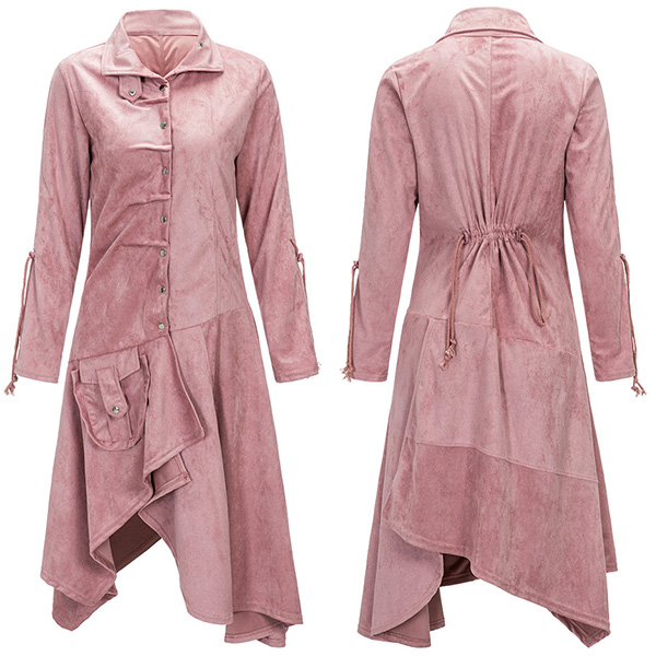 choosing this dress. Solid color style,designed with long sleeve,irregular hem and drawstring wrinkled details,