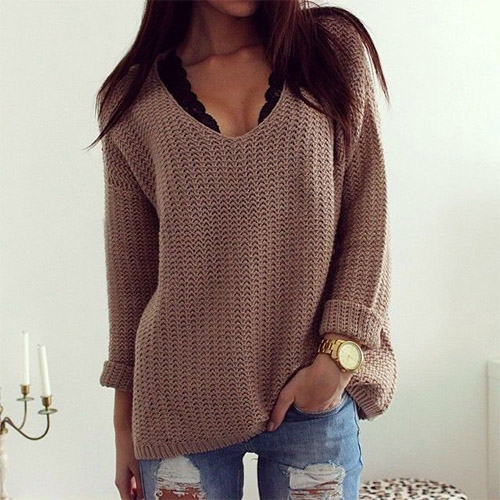 long in total comfort! It's complete with long sleeves, a v-neckline,