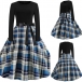 round neck and high waist design,this dress can showcase your slender figure. The plaid spliced hem
