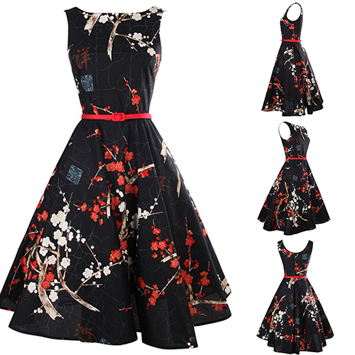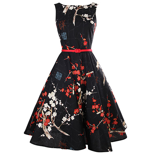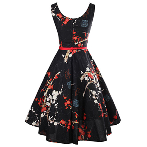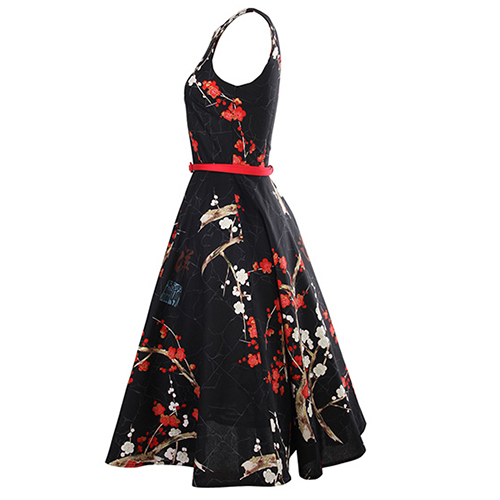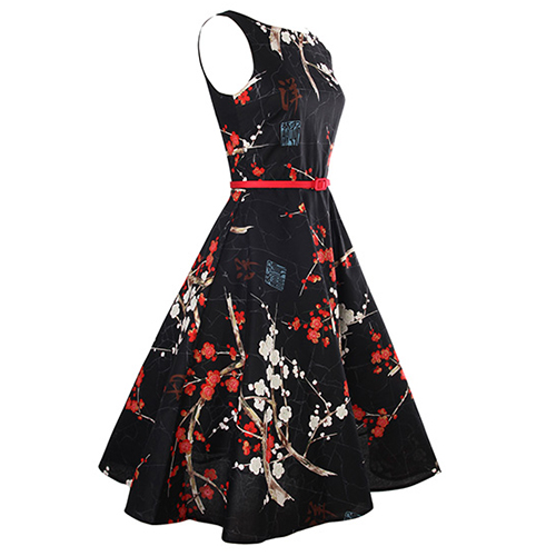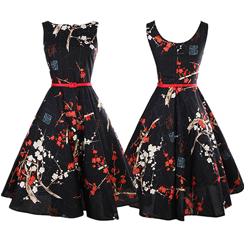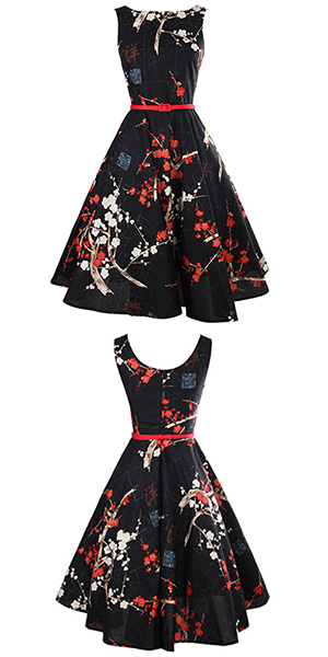 Retro style, in the background of black hue, chic printed design makes this dress look more beautiful.