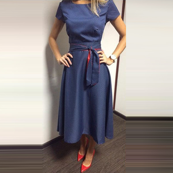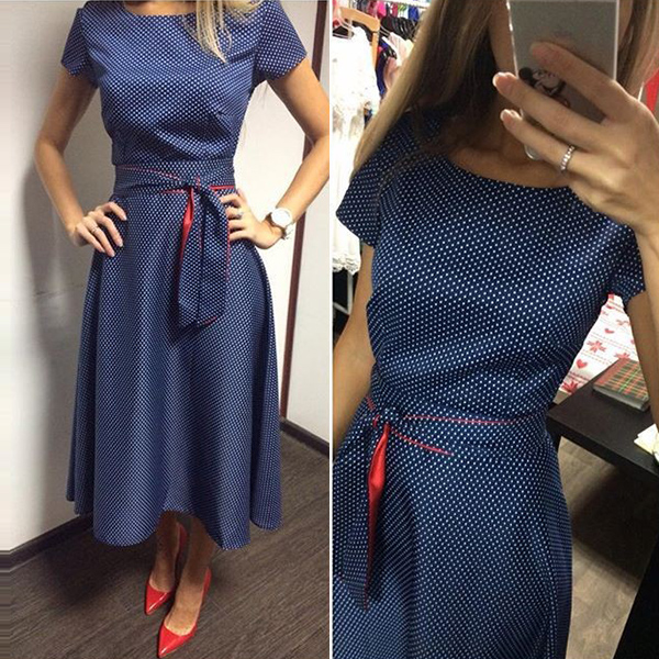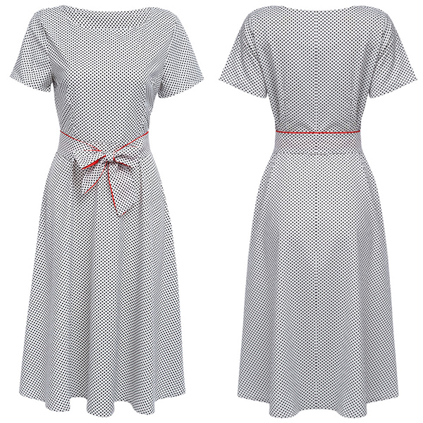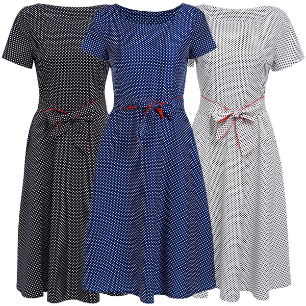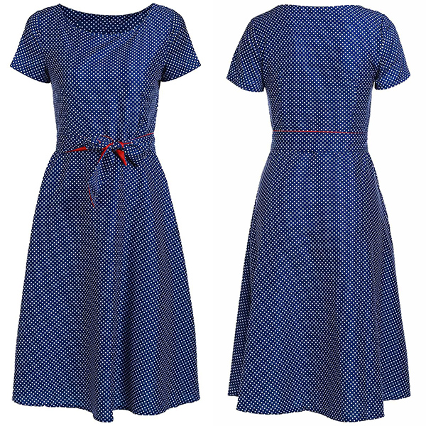 Dots printed design lends you a retro and playful vibe. Comes with a waist strap design can better demonstrate your graceful curve.