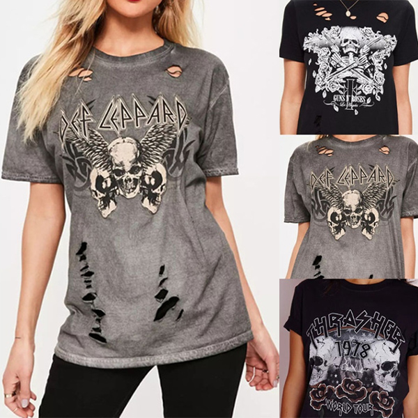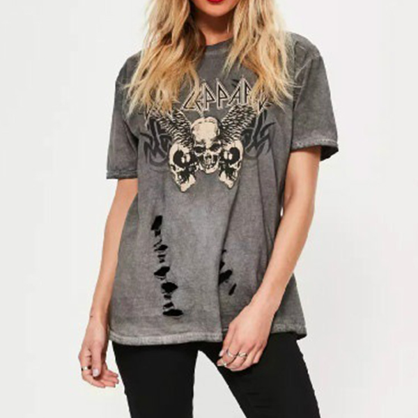 round neck design,this t-shirt can ensure you a comfortable day,while its skull printed pattern and ripped details lend you a