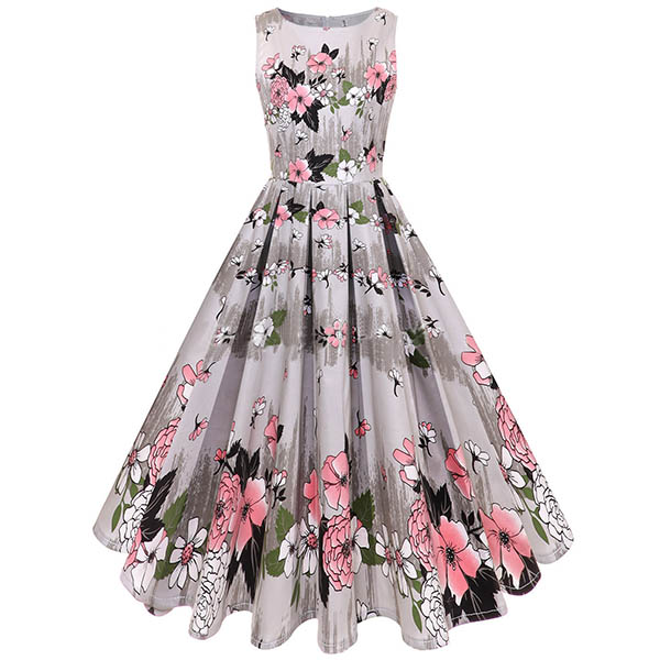 Retro yet elegant,this is what this dress can offer you! It is styled with sleeveless,round neck and high waist design,