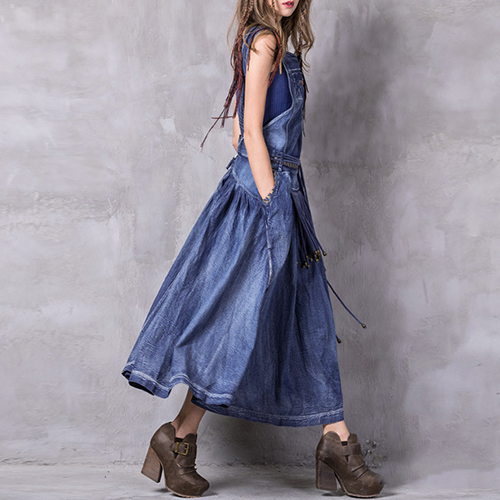Designed with sleeveless,round neck and a maxi hem,retro and classic. Its tassel and embroidery details make this