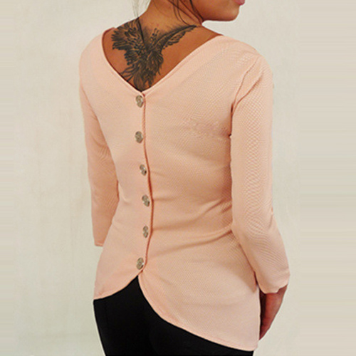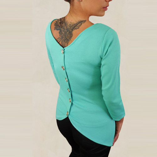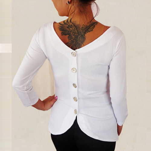 The button on the back is the most special design. This T-shirt can be dressed up or down,