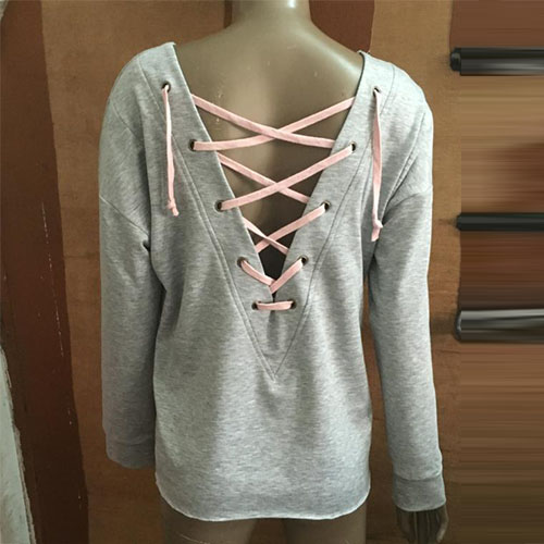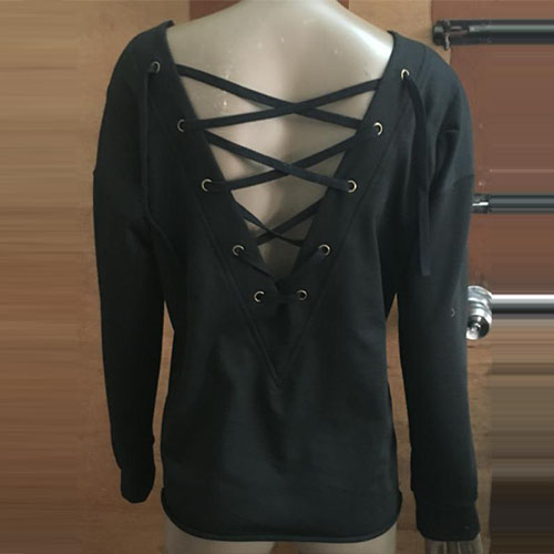 Suitable for your fall, this piece is outfitted with round neck, long sleeve and back lace-up design,