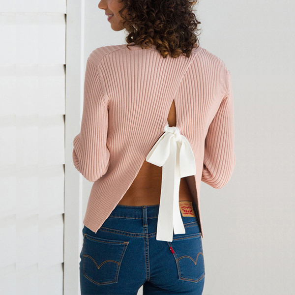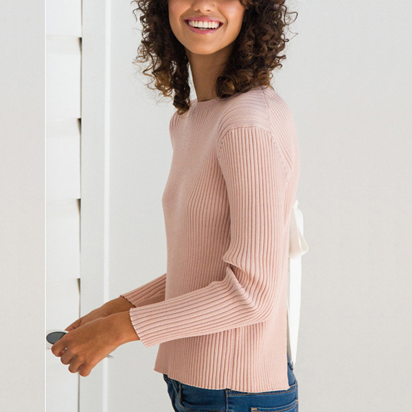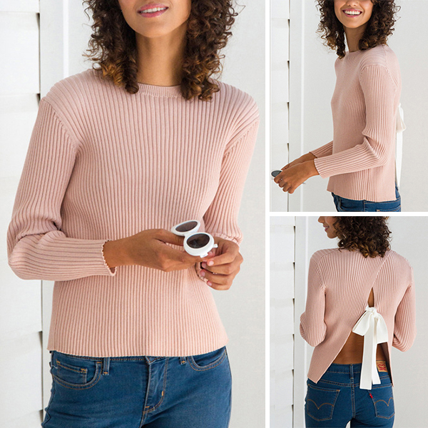 distinctive? We think it owes to the back-slit design. You are bound to win more eyes when you wear this knit top.