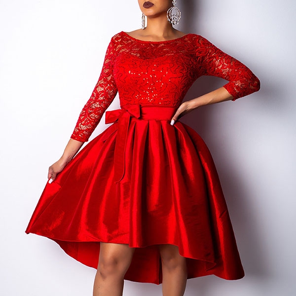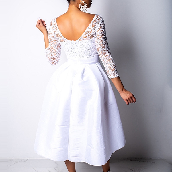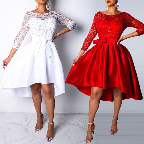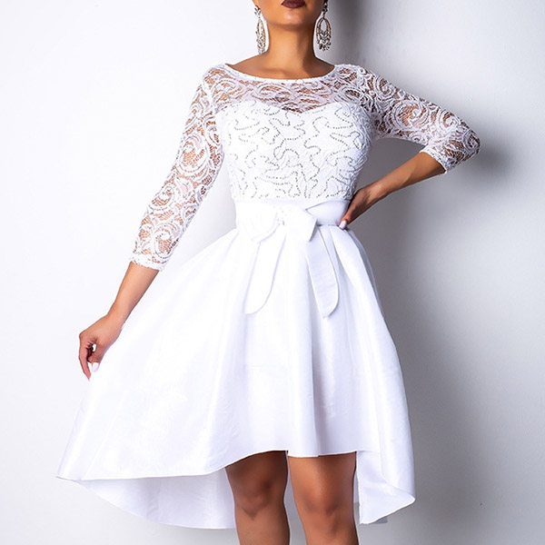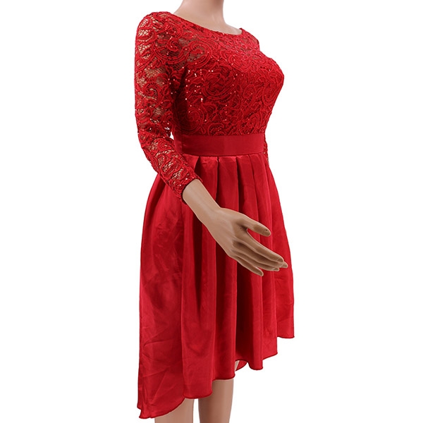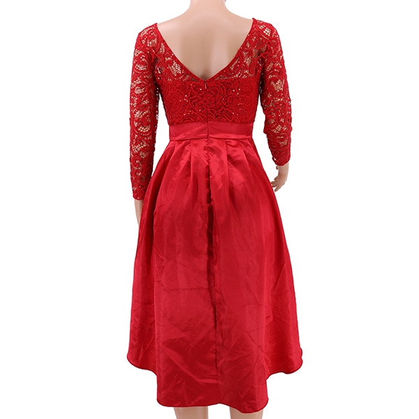 3/4 sleeve dress. Its alluring design details like backless,high-low hem and lace spliced design will make this piece