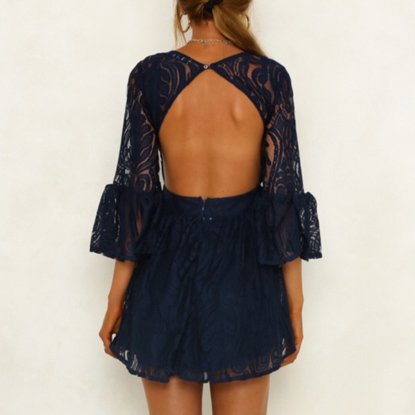 You can easily exude your charming feminine appeal through this lace dress. The backless and 3/4 trumpet